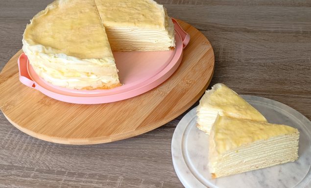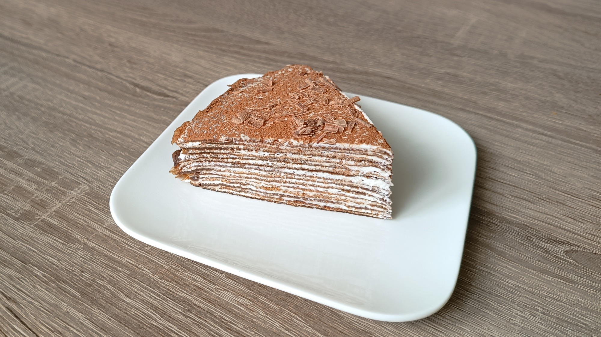 Laag na laag flinterdunne crêpes, gevuld met decadente room.