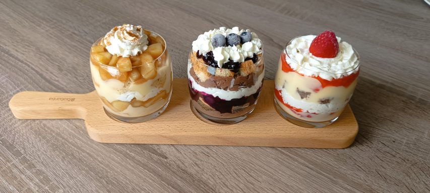 Laagjes cake, kwark, vers fruit en room zijn een perfecte afsluiter van vrijwel elk uitgebreid diner.